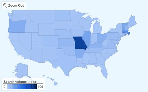 So how red and blue are they really? Well, I searched for those terms: 'blue state' and 'red state' to see who was Googling them. Confusion reigns: